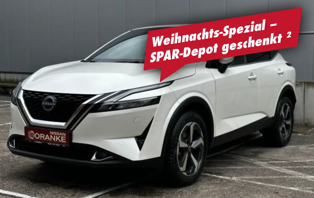 Wiir verlängern unsere exklusiven Black Deals bis zum 31.12.2023 und legen noch etwas oben drauf! 6 TOP-Modelle zu unschlagbaren Preisen, und als Weihnachts-Spezial schenken wir Ihnen bei den hier angebotenen Nissan-Modellen unser Spar-Depot ².