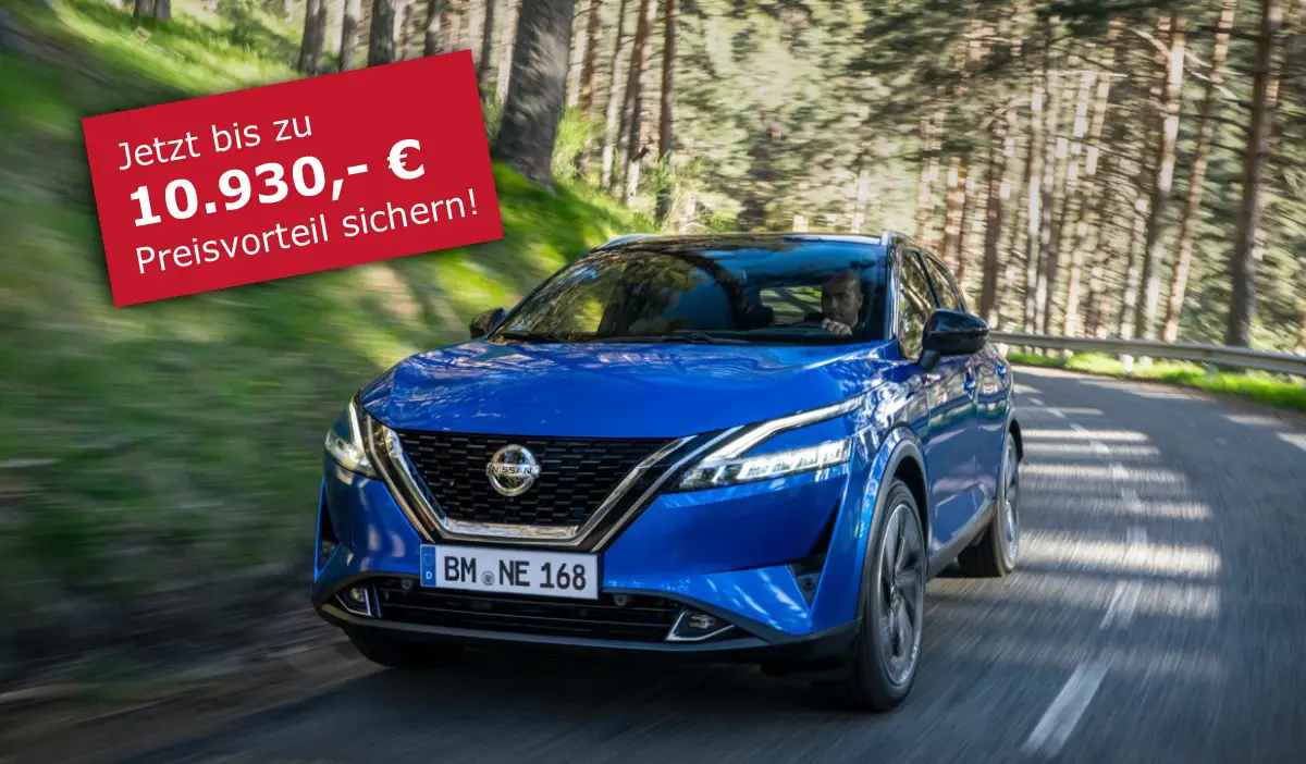 Ab sofort startet unsere große Abverkaufsaktion für den Nissan Qashqai. Profitieren Sie von außergewöhnlichen Konditionen und der sofortigen Verfügbarkeit von über 20 Lagerwagen.